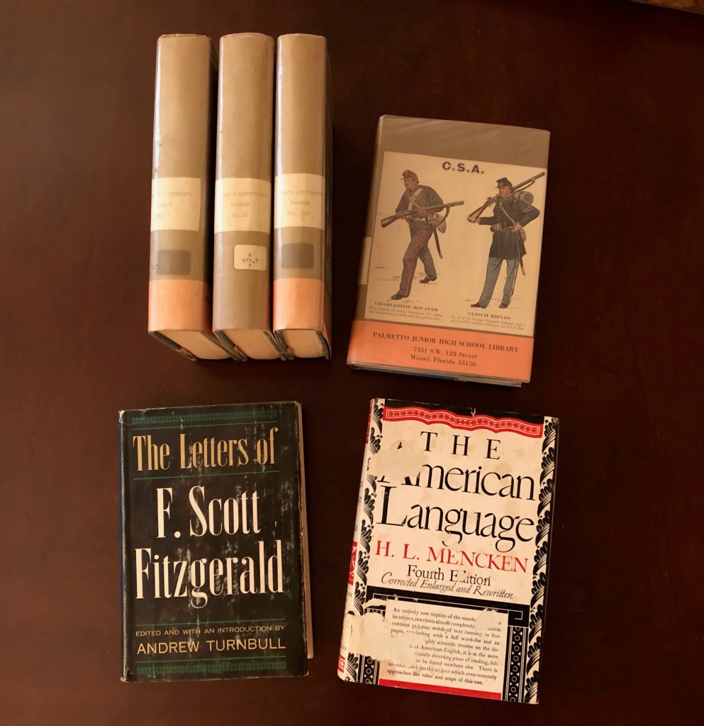 In addition to the books themselves, I was taken by the fact that this particular set of books came from the Palmetto Junior High School library in Miami, Florida, where my friend had been a principle and retired from in the early 1990s.